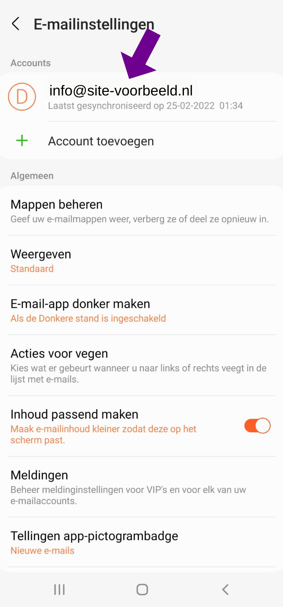Instellingen aanpassen van een bestaand emailadres op je Android-toestel.